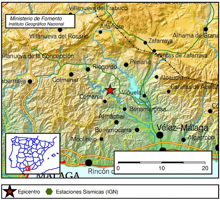 Derudover var der faktisk også et skælv i går aftes klokken 19:59 inde i landet nord for Rincón de la Victoria.