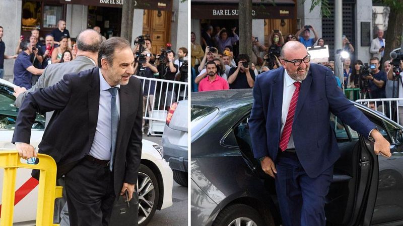 Da de ankom til Højesteret i Madrid, blev de mødt med råb om "korrupte" og "liderlige" fra personer, der havde samlet sig ved indgangen.