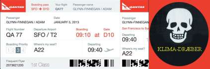 Hel fiktion er historien måske ikke i fremtiden. Ligesom det er forbudt at lave reklamer for cigaretter, kan det måske også blive det for flyselskaber. Og i den forbindelse skal der sikkert også trykkes advarsler på rejsebeviser, flybilletter og boardingkort.