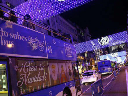 Julebussen Naviluz, som er en dobbeltdækker, tager dig på sightseeing i den spanske hovedstad.