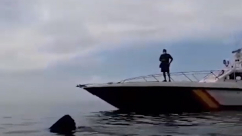 VIDEO: Søndag morgen spottede politiet en over otte meter lang haj i vandet nær stranden i Granada-provinsen.
