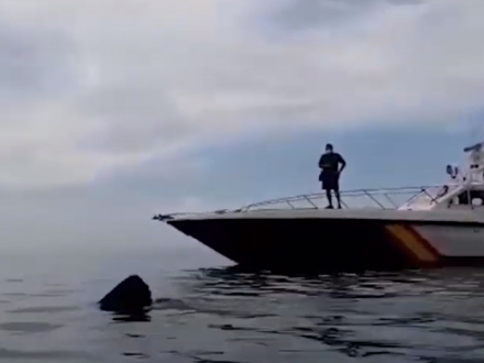 Hajen er ikke farlig for mennesker, men kystvagten fra Guardia Civil anbefalede dog folk i nærliggende både til at holde god afstand til dyret. Et bask med halen fra sådan en fætter kan let sænke en båd.