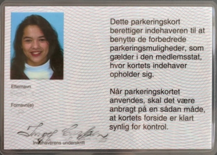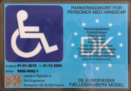 I Danmark er det Brugerservice i Danske Handicaporganisationer (DH), der udsteder handicapparkeringskortene på Rigspolitiets vegne.