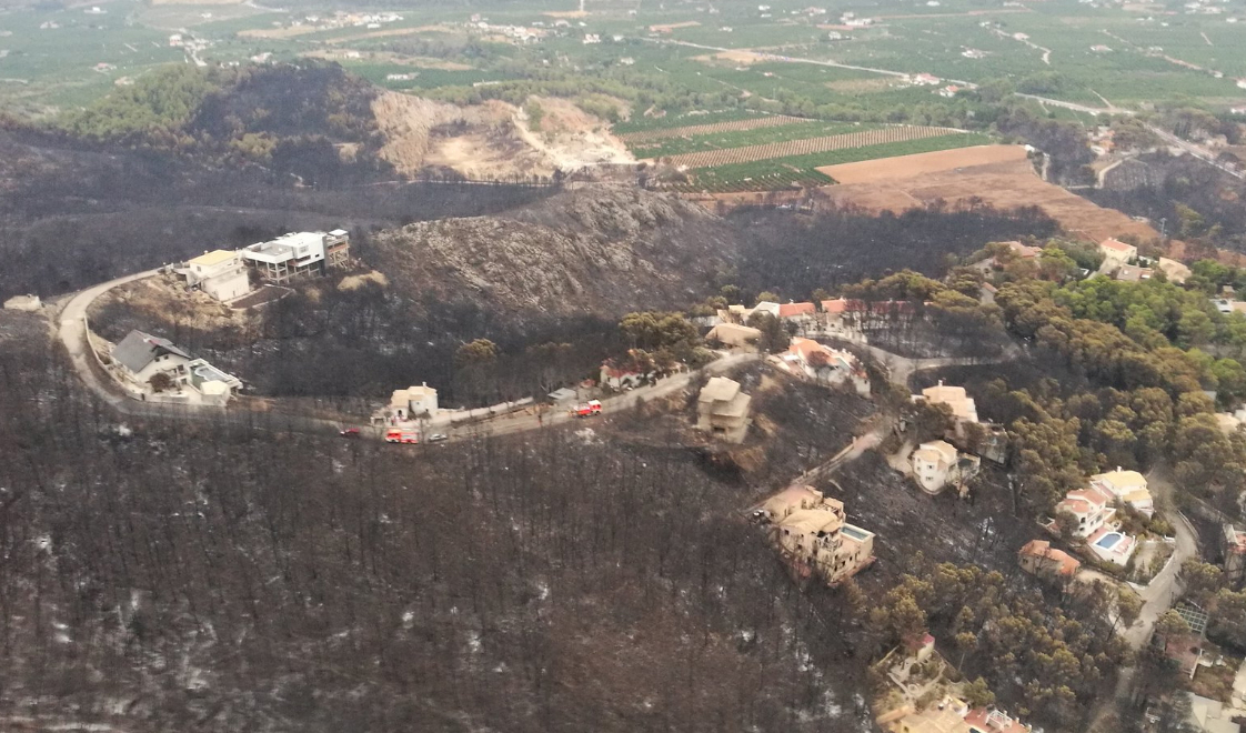 Branden nåede til Monte Pino, Montesol og Las Cumbres urbanisationer, som alle hører under Marxuquera i La Safors Kommune.