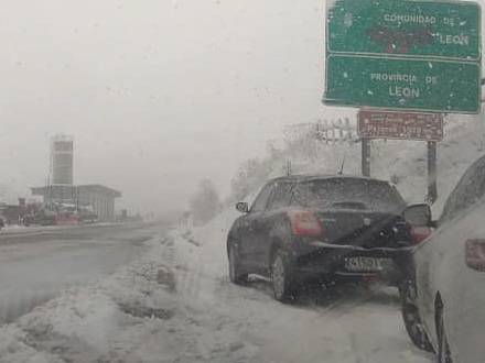 Det startede allerede med at sne fredag her i León i Nordvestspanien