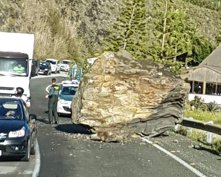 VIDEO: Tonstung sten vælter ned på Kystvejen ved Nerja og lukker for al trafik. Det er et sandt mirakel, at ingen kom til skade.