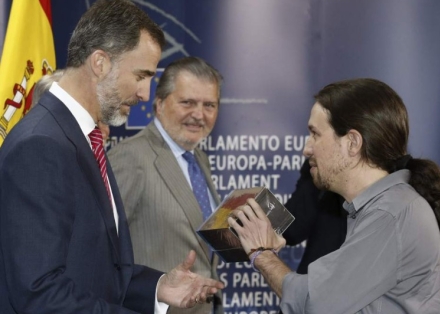 De to herrer mødte dog hinanden i EU-parlamentet, hvor Iglesias benyttede lejligheden til at forære kongen en meget symbolsk gave: DVD-boksen med succes-serien Game of Thrones - Kampen om tronerne. Der er i øvrigt en dansker på rollelisten. Læs mere om seancen her