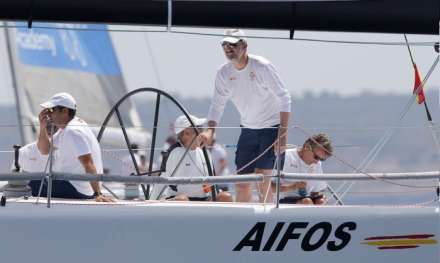 Fra kajen gik kongefamilien ombord på Aifos 500 og hilste på skibets besætning, hvor Kong Felipe selv skal deltage i kapsejladsen i dag. Sejlbåden tilhører den spanske flåde, og deltager i Club Swan 50-klassen. Iøvrigt den samme type båd, hvor den norske Kong Harald deltager med sin Fram XVIII.