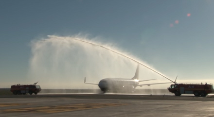 Brandbilerne hilste Ryanair velkommen