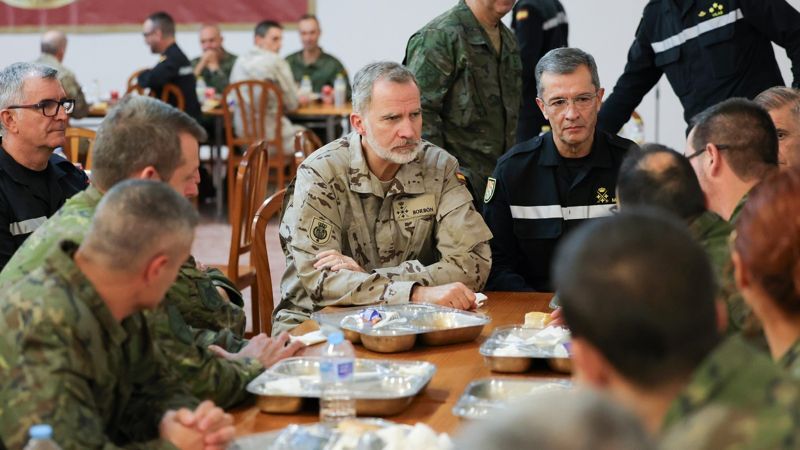 VIDEO: Kong Felipe VI besøgte militære enheder udstationeret i Valencia på grund af DANA.