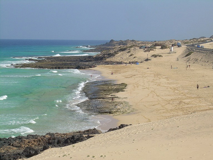 De smukker sandklitter i Corralejo. Den lukkede vej kan anes i baggrunden