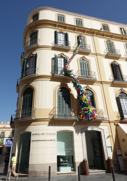 Det gigantiske kunstværk blev installeret i går på af de centrale pladser i Málaga i anledning af Picassos fødselsdag.