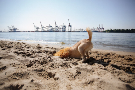 Hun syntes fra starten, at hunden lignede en løve med sin lyse øjne og lysebrune pels. Så hun fiksede en paryk og begyndte at tage billeder af “løven” fra hendes faroritsteder i hjembyen Hamburg.