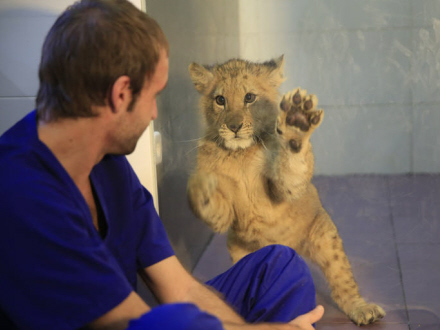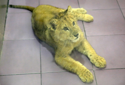 Annonceret som "verdens mindste løve« var ungen buret inde uden særligt meget mad, mens besøgende betalte 20 euro for at få taget et billede med ham. Spiserøret blev så trangt grundet manglen på ordentlig mad, at han kun var i stand til at indtage væske.