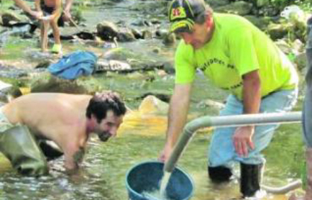 Lokale og turister samles, og under kyndig ledelse finder de guld