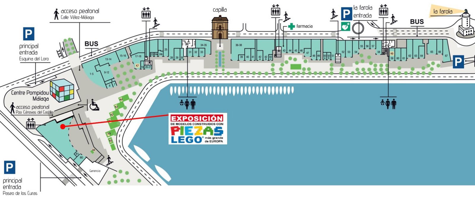 Grupper på 10 eller flere slipper med 4,5 euro pr person, men kun mandag til fredag fra 11:00 til 16:00. Grupper skal dog booke på forhånd på reservas@expopiezaslego.es eller på telefon +34 660 672 052