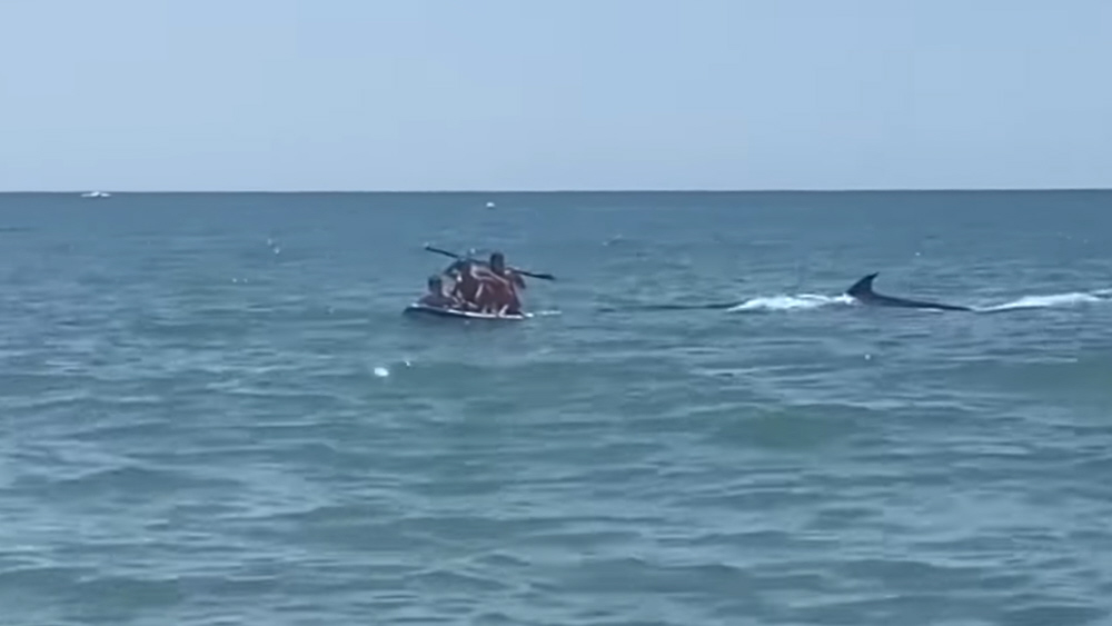 VIDEO: En af havets giganter svømmede rundt blandt strandgæsterne.