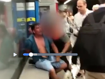Flere rejsende angreb en lommetyv i Barcelona Metro, efter de tog ham i at stjæle en mobiltelefon på en perron. De sparkede og slog ham, indtil en sikkerhedsvagt ankom og fik sat en stopper for selvtægten.