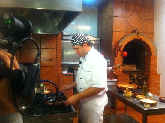 Kokken i færd med at lave noget af Mesón La Tinajas berømte, hjemmelavede mad