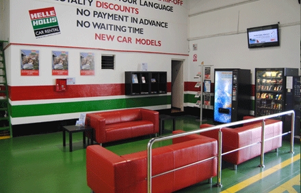 Når du har afleveret din bil, bliver du kørt i lufthavnen, og på den måde slutter cirklen med Helle Hollis