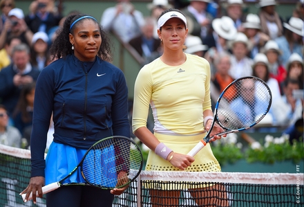 Garbiñe (til højre) vandt lodtrækningen men lod Serena starte med at serve