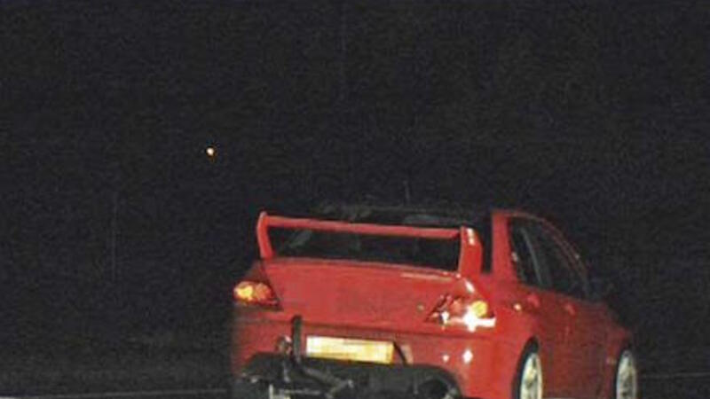 Den røde Mitsubishi Lancer var umiskendelig med sin farve og bagspoiler.