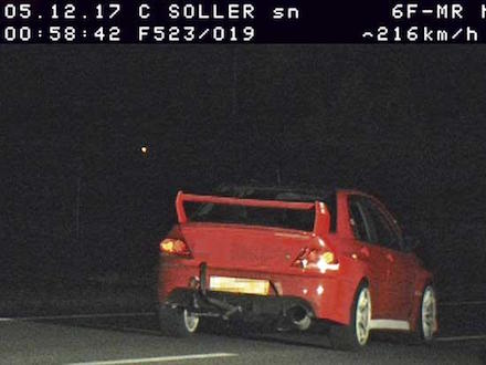 Den røde Mitsubishi Lancer kom kørende på vej til Sóller, Mallorca, da radaren afslørede, at bilisten kørte 216 kilometer i timen.