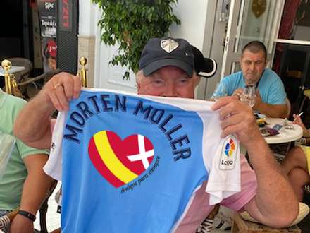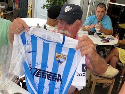 Trøjen med Mortens navn og spillerautografer var en gave fra Malaga CF
