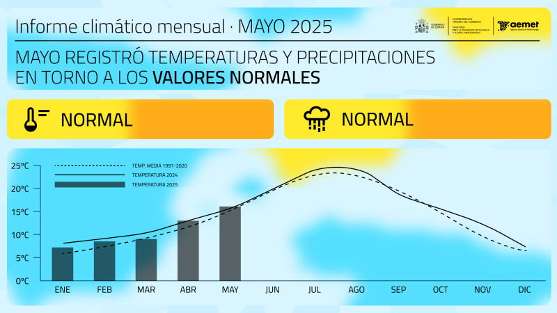 Det Spanske Meteorologiske Institut, AEMET, har offentliggjort klimarapporten for maj 2025.