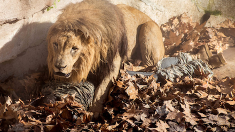 Militærklædt mand kastede sig i går ned i løveburet i Zoologisk Have i Barcelona. Rovdyrene kastede sig med det samme over manden, men han blev reddet i sidste øjeblik og er indlagt på sygehus i kritisk tilstand.