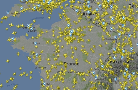 Klokken 11:18 var der fly over Frankrig, men det er slet ikke så tæt som normalt