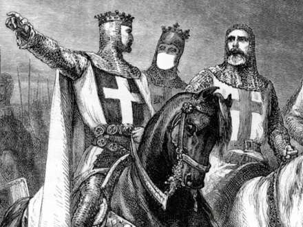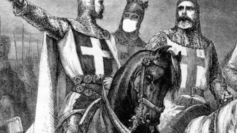 KLUMME: Korsfarerne trak sværdet for at tvinge andre til at tage deres religiøse overbevisning til sig. Så galt er det dog ikke gået i korstogene om maskerne under corona-krisen. Selv om døden også har været med her.