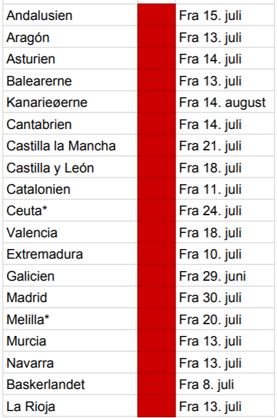 Dermed slutter ferieøerne sig til resten af landet, hvor man har haft obligatorisk maskebrug i op til halvanden måned. Det startede med Galicien den 29. juni, mens Madrid sluttede sig til den 30. juli. Galicien var også først med at indføre rygeforbud i alle offentlige, udendørs rum, og andre regioner overvejer noget lignende. Læs mere her