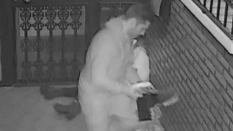 Overfaldet er blevet optaget på overvågningskamera.