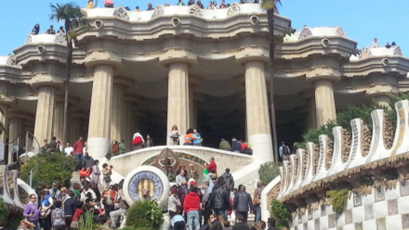 Park Güell, der er et pragtværk af den farverige og modernistiske arkitektur af Antonio Gaudí. Den bliver dog skarpt efterfulgt af Sagrada Familia.