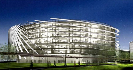 Den kendte arkitekt Norman Foster havde skitset de enkelte - alle runde - bygninger med hver sin arkitektoniske identitet. Grunden på 400.000 kvadratmeter ligger i Valdebebas distriktet tæt på Adolfo Suárez, Madrid-Barajas Lufthavn.