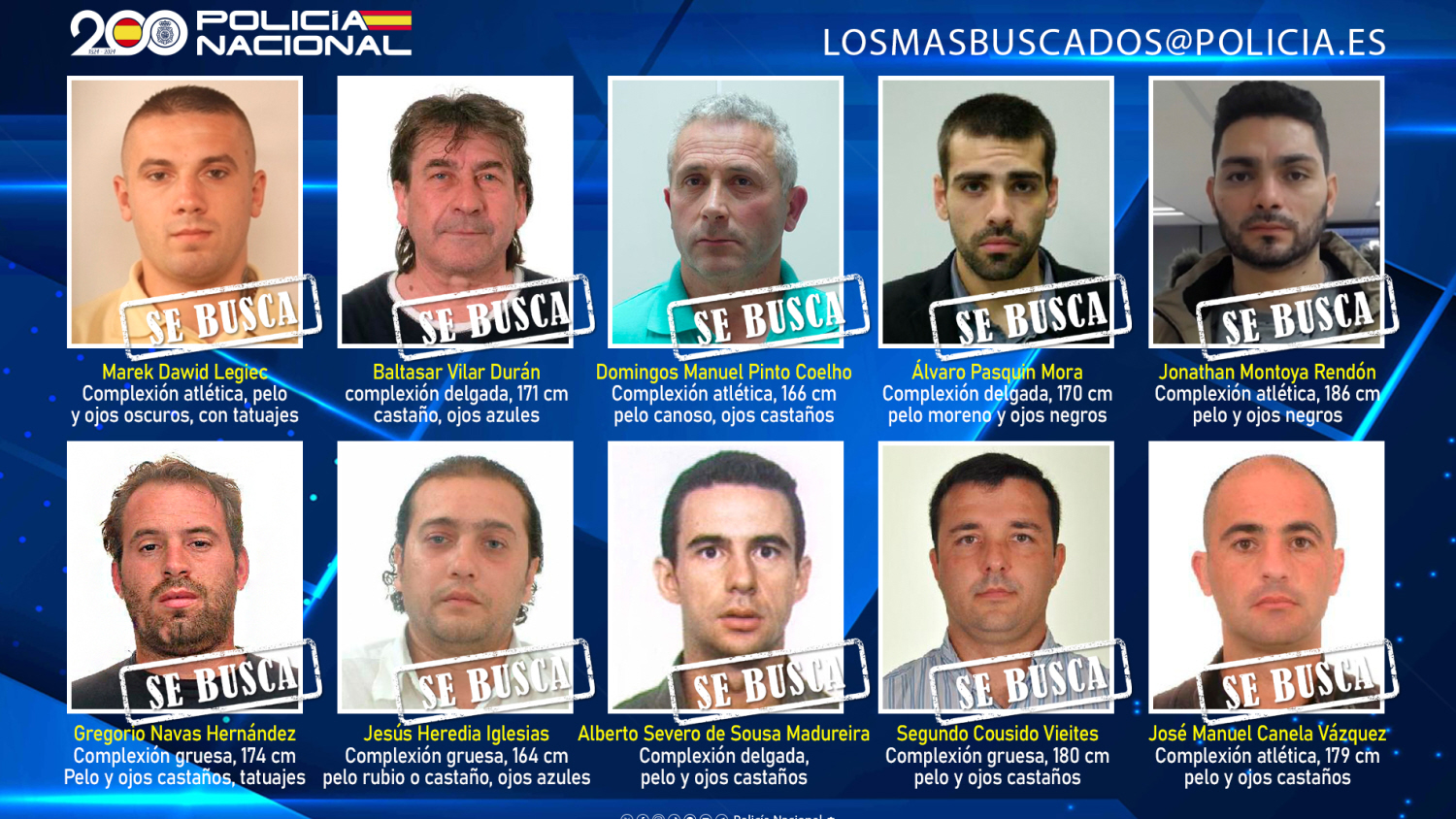 Policía Nacional leder lige nu efter ti eftersøgte kriminelle, som efter al sandsynlighed befinder sig i Spanien.