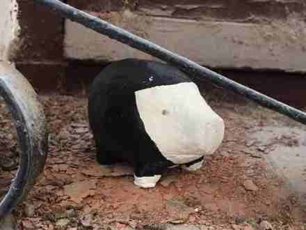 Distributionen af grisene skete natten til mandag i den forgangne uge. De små lerfigurer - de er 8 -10 centimeter lange - blev efterladt overalt: i opgange, på tage og uden for børnehaver.