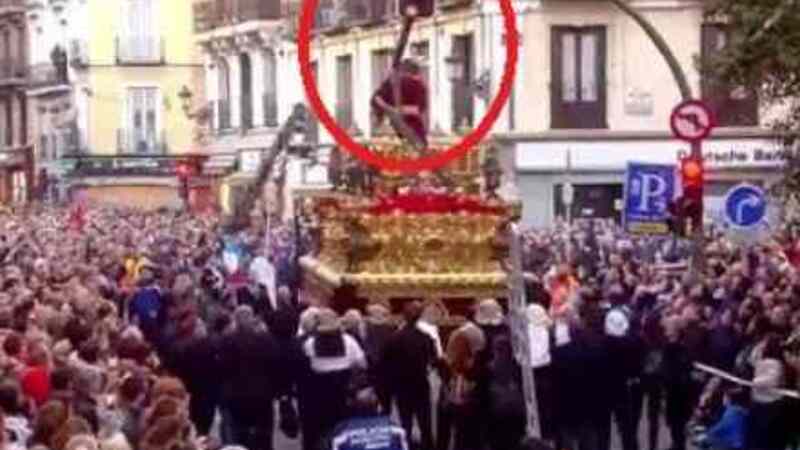 Kort efter tronen var båret ud af broderskabets kapel, ramte korset, som Jesus bærer på vej op til Golgata, et trafiklys, og korset gik i stykker.