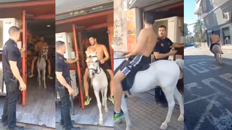 I går fik politiet i Elche, Alicante, en noget anderledes opgave, da en mand besluttede sig at tage ud at handle på hesteryg - altså helt ind i butikken!