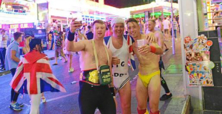I sidste uge havde politiet fat i en gruppe briter, der slentrede gennem gaderne i Magaluf. Nogle af dem var klædt ud, da de var på polterabend. To af dem varkun iført g-streng, mens andre var totalt nøgne.