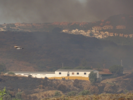 Undertegnede var selv vidne til denne morgens drama. Sad på en terrasse og drak morgenkaffe, da en voldsom røg pludselig opstod godt en kilometer nord for Coín-vejen ved Sankt Anthonys School og La Cala Hills.
