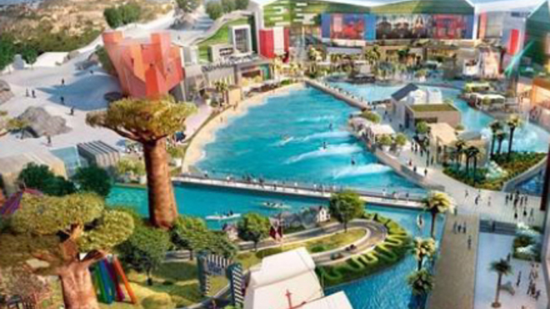 Parken vil byde på sager som svømmebassin med gigantiske bølger, så man kan surfe, en klatrevæg i fri luft, skibakker med sne hele året, restauranter, biografer og et hotel.