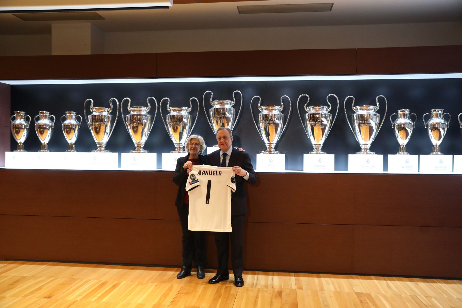 Borgmester Carmena fik naturligvis sin egen klubtrøje overrakt