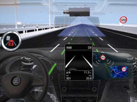 Elektronisk regulering af tophastighed i henhold til den gældende fartbegrænsning der, hvor bilen kører, automatisk opbremsning, hvis sensorer beslutter det. Det kan være, hvis der bliver for kort afstand til forankørende, en fodgænger - eller måske en hund - går ud foran bilen.