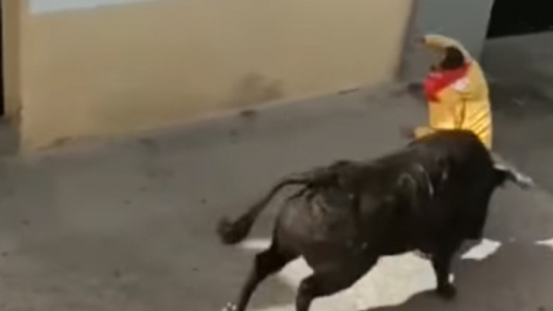 VIDEO: Mand blev trængt op i en krog under et under tyreløb i Sydspanien. Det slap han ikke godt fra (advarer om stærke billeder).