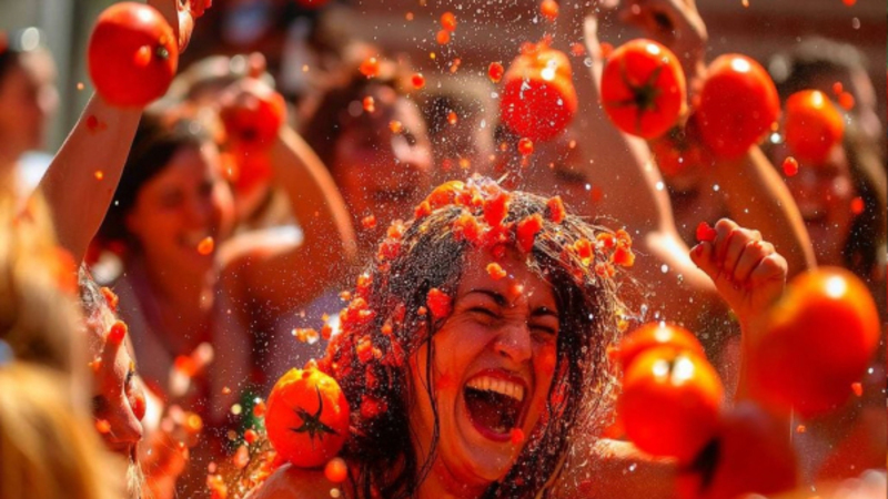 I Danmark fortæller mødre gerne deres børn, at man ikke må lege med maden, men i byen Buñol nær Valencia bliver dén historie sat totalt på hovedet - i hvert fald én gang om året.