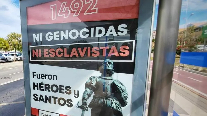 De var hverken folkemordere eller krigsherrer, men modige helte og helgener, der satte deres liv på spil for udbredelse af den katolske tro. Sådan står der på en række plakater, der er sat op i flere spanske storbyer om Spaniens kontroversielle erobring af Amerika.
