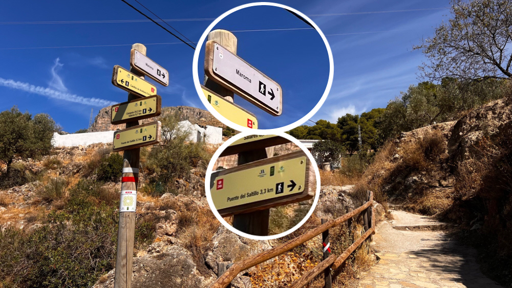 Når man så er kravlet op over byen, skal der træffes et valg: La Maroma fortsætter opad eller El Saltillo til venstre ...
