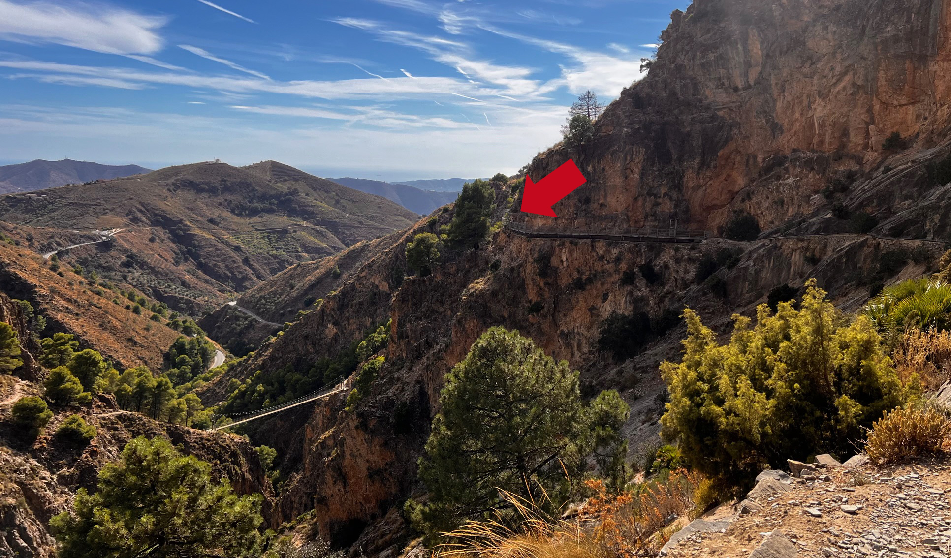 Vandreruten til hængebroen er en del af Rute 7 'Gran Senda de Málaga' og hele strækningen er godt 25 kilometer lang, men kan let tages som en kortere, lineær vandretur fra Canillas de Aceituno. Og så kan man endda krydre den med en afstikker op i kløften, der ender med et lille vandfald og en lagune, hvor man kan køle fusserne.